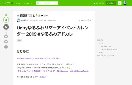 はじめに 2018年から2年連続で「Unityゆるふわサマーアドベントカレンダー」(以下ゆるふわアドカレ)というイベントの運営をしています。 Unityゆるふわサマーアドベントカレンダー 2018 - Qiita Unityゆるふわサマーアドベントカレンダー 2019 #ゆるふわアド…